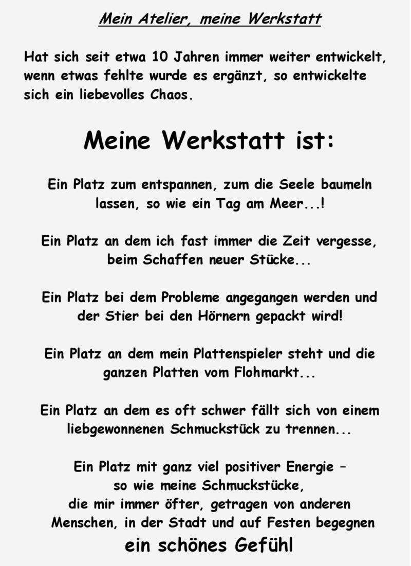 Seit 2000 fertige ich in meinem kleinen Atelier nun Schmuckstücke aus